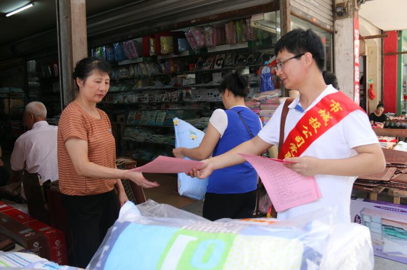 志愿者向居民和商業(yè)店鋪發(fā)放宣傳資料《創(chuàng)建全國文明城市倡議書》《創(chuàng)建全國文明城市應(yīng)知應(yīng)會知識》《創(chuàng)建全國文明城市知識問卷》,向居民和商業(yè)店鋪講解了“創(chuàng)城”的意義,并與執(zhí)法大隊人員一起對沿街不規(guī)范的店鋪進行整改。