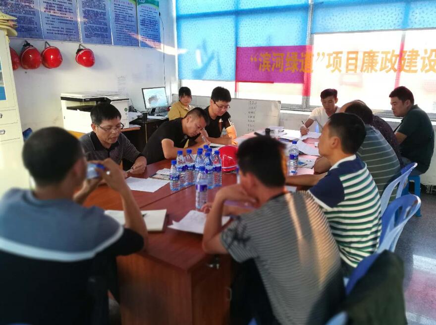 為進(jìn)一步加強(qiáng)工程項(xiàng)目廉政建設(shè),增強(qiáng)工程管理人員廉潔自律意識(shí),從源頭上杜絕各種違法違紀(jì)行為發(fā)生,10月16日-27日,市城投公司黨支部書(shū)記劉有才和公司副總經(jīng)理、紀(jì)檢委員林榮煥分別帶隊(duì)到濱河綠道、三橋一路、金雞路二期管廊工程等新開(kāi)工項(xiàng)目部召開(kāi)項(xiàng)目廉政建設(shè)座談會(huì)。