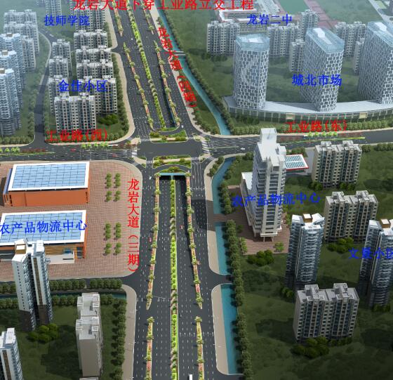 龍巖大道工業(yè)路下穿通道項(xiàng)目位于龍巖大道與工業(yè)路交叉口,為現(xiàn)狀龍巖大道三期道路上設(shè)置下穿通道,起始于規(guī)劃支路農(nóng)產(chǎn)品物流配送中心路口,終止于龍巖大道四期龍巖第一技師學(xué)院東側(cè),全長383米,其中框架涵長度80米,U型槽長度303米,地道凈寬2×13米,雙向六車道。主通道兩側(cè)設(shè)置兩道南北向人行地下通道,人行通道斷面型式:5×3.5米,主通道長124米,梯道長128米,總投資約2億元。