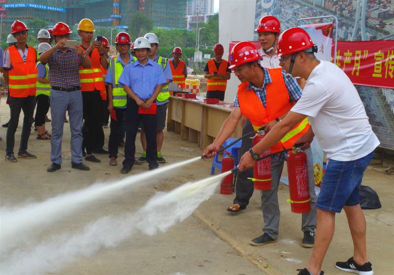 6月16日是“全國安全生產(chǎn)宣傳咨詢?nèi)铡?。?dāng)日,龍巖城發(fā)集團(tuán)與市城投公司組織人員分別前往中心城區(qū)華蓮西路一期、火車站站前高架橋、龍巖大橋高架橋、龍巖大道四期下穿工業(yè)路通道等四個(gè)項(xiàng)目工地,開展安全生產(chǎn)宣傳活動(dòng)。圖為工作人員現(xiàn)場(chǎng)指導(dǎo)工人使用滅火器。